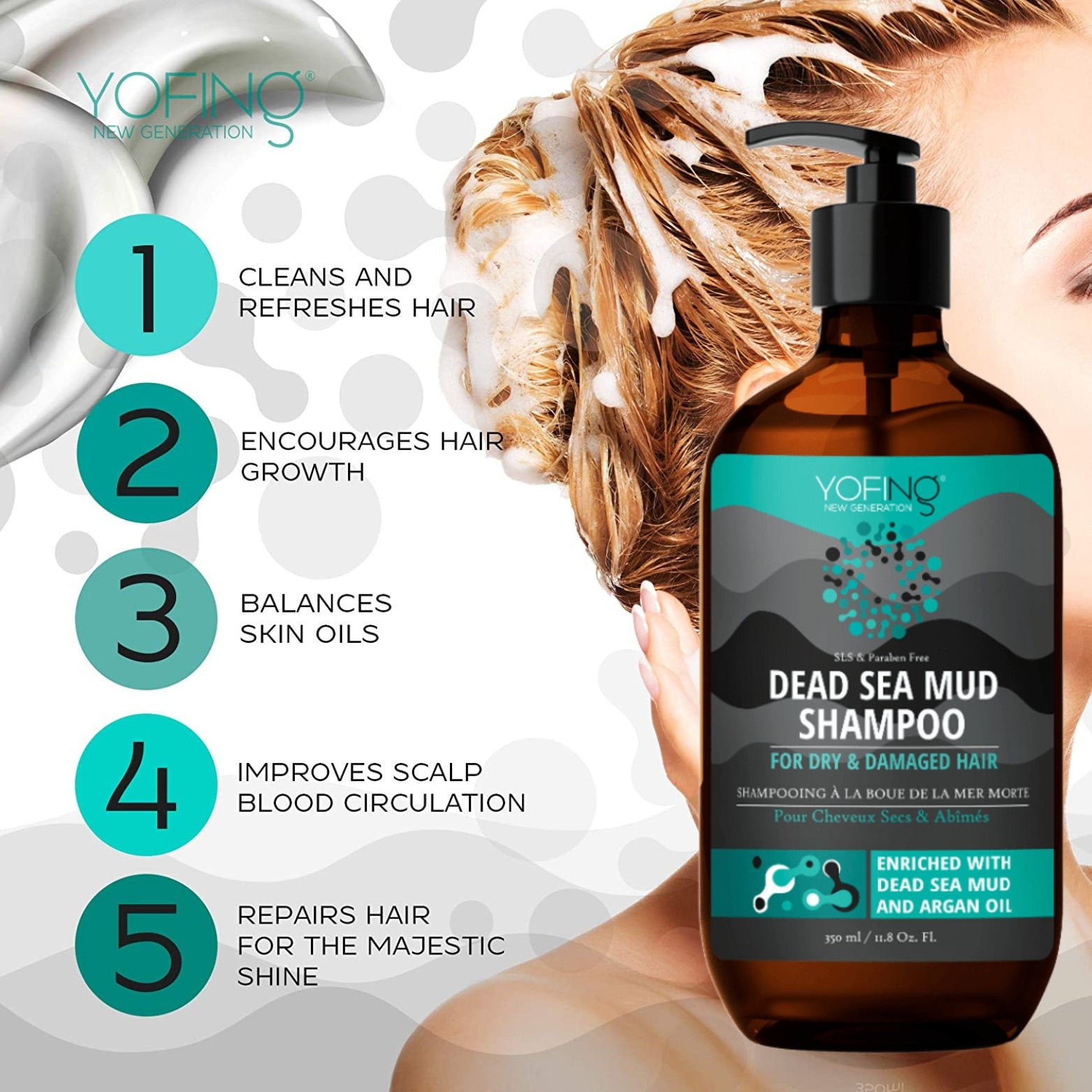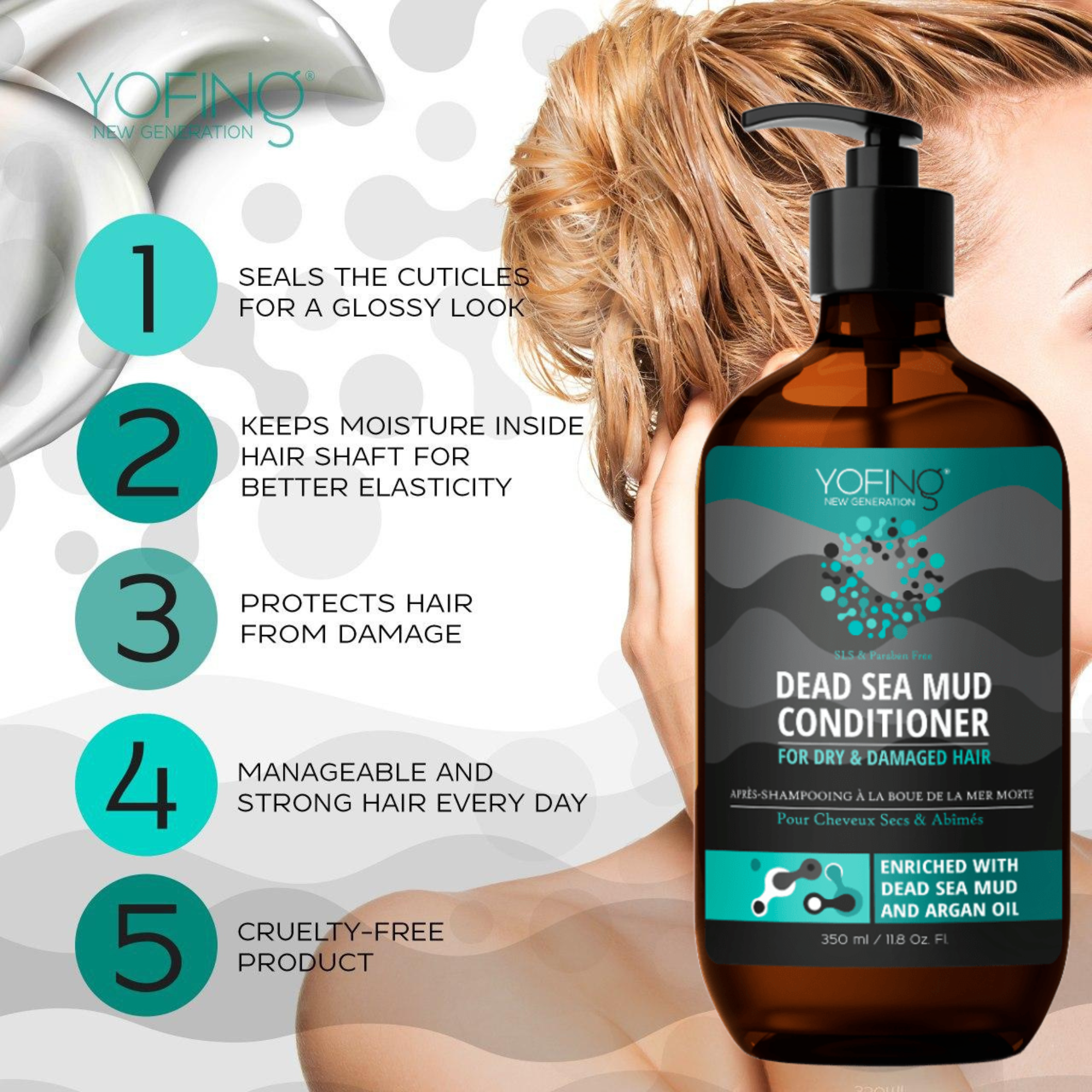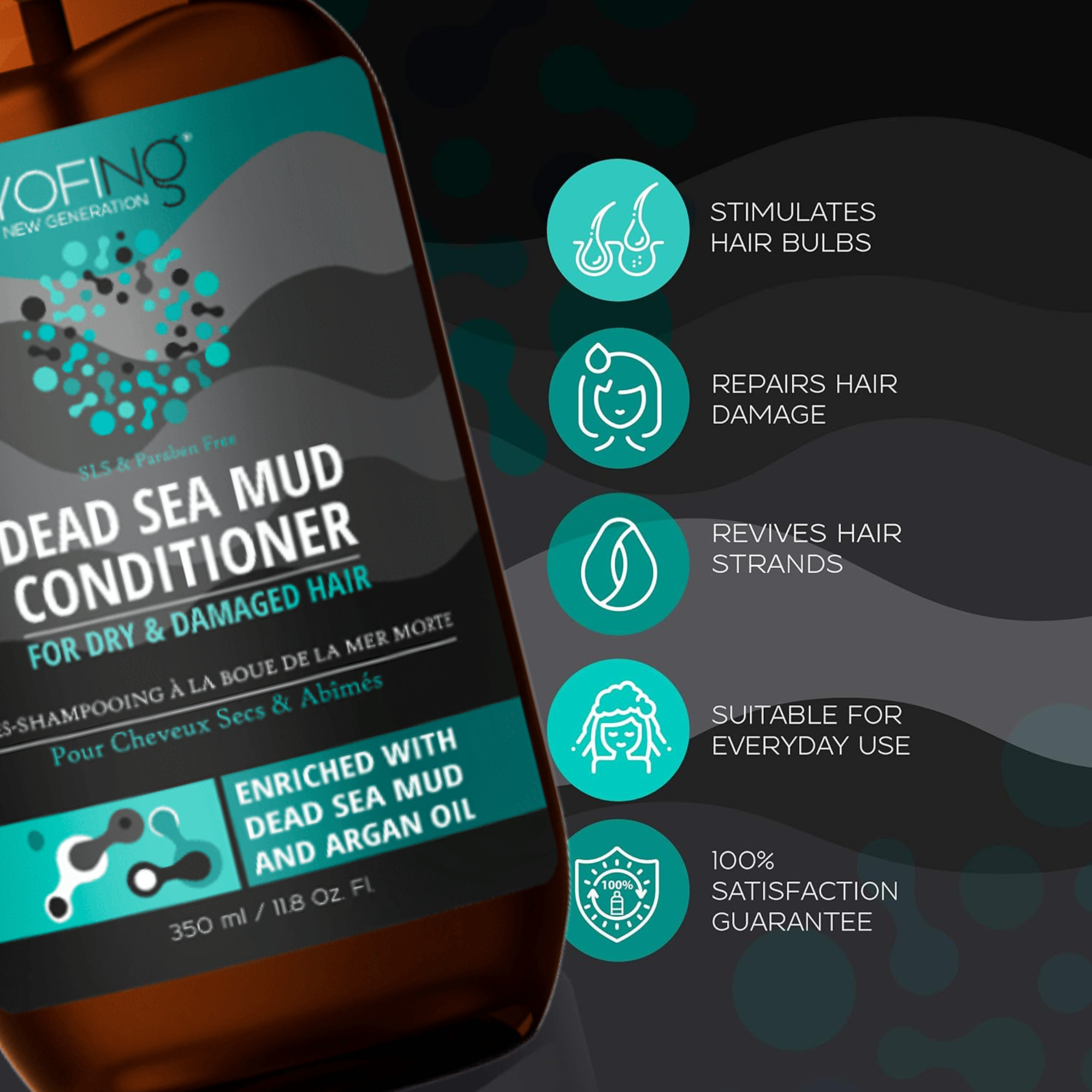 YOFING Schwarzes Schlamm Haarspülung stellt Haare wieder her, die durch Farbe, chemische Verarbeitung oder Wärmestyling geschädigt wurden. Es entwirrt und pflegt das Haar sanft und effektiv, sodass es hydratisiert, handlich und stark bleibt. Die hochkonzentrierte, reparative Formel stellt die Gesundheit, Feuchtigkeit und Elastizität des Haares mit antioxidantienreichem Arganöl und Schlamm aus dem Toten Meer wieder her.